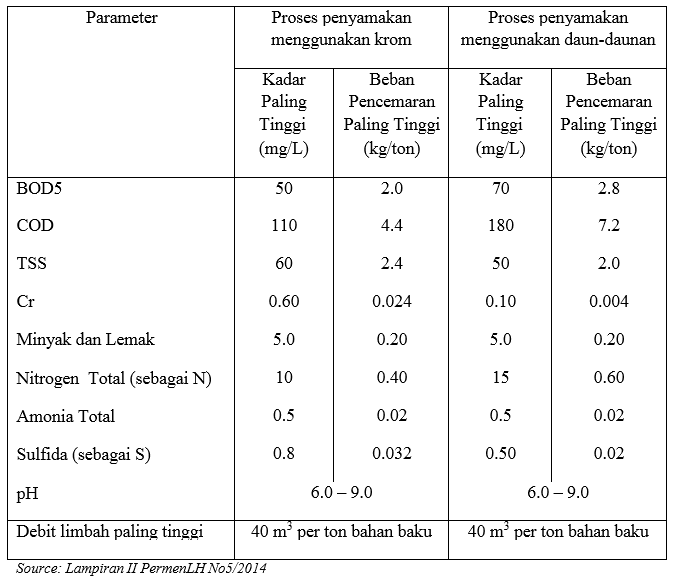 TABEL 2. BAKU MUTU LIMBAH CAIR BAGI INDUSTRI PENYAMAKAN KULIT
